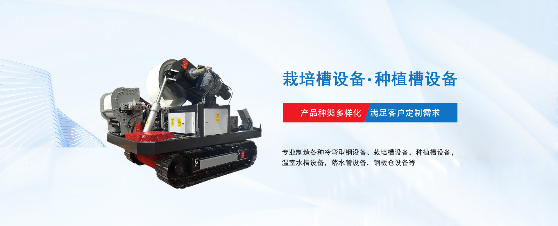 雄博機械主營:種植槽設備/栽培槽設備/草莓栽培槽/新型立體種植槽/草莓無土栽培設備/草莓立體種植系統/懸吊種植槽系統/落水管設備/鋼板倉設備/聚氨酯設備等。
